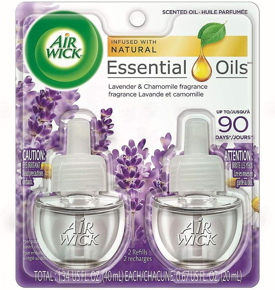 Air Wick Plug in Scented Oil Refill, 2ct, Lavender & Chamomile, Essential Oils, Air Freshener