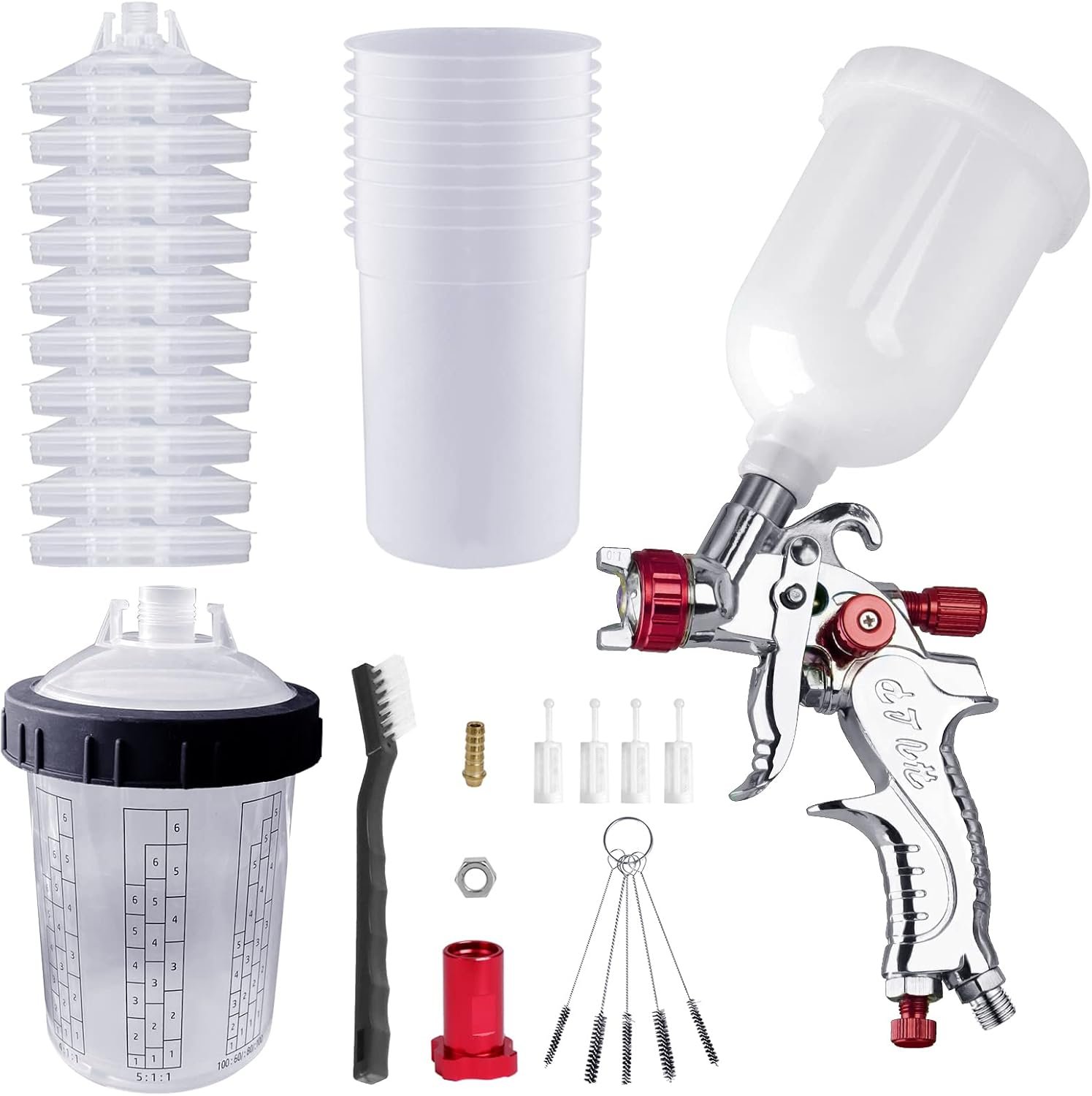 [Disposable Cups, Cleaning Brushes, Spray Gun] |