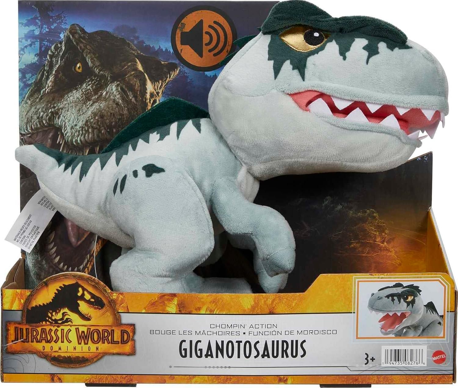 Mattel Jurassic World Dominion Chompin’ Action Giganotosaurus Plush Dinosaur Figure, Soft Doll with Roar Sound and Chomp Motion, Toy Gift