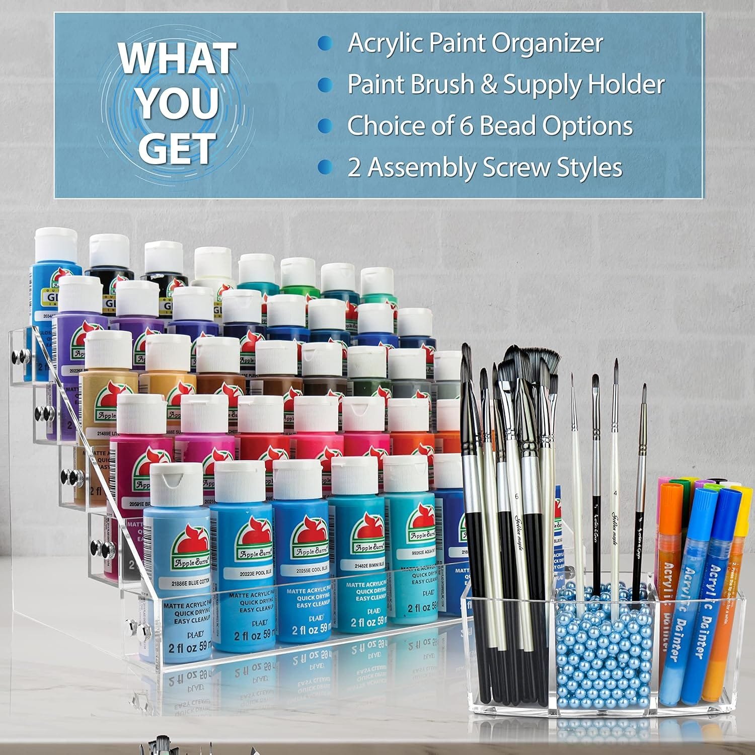Paint Organizer & Paint Brush Holder Set. 6 Support Bead Options. Thick, Durable, Crystal-Clear Acrylic with Diamond-Polish Finish. Paint Bottle Organizer & Craft Paint Storage. SB
