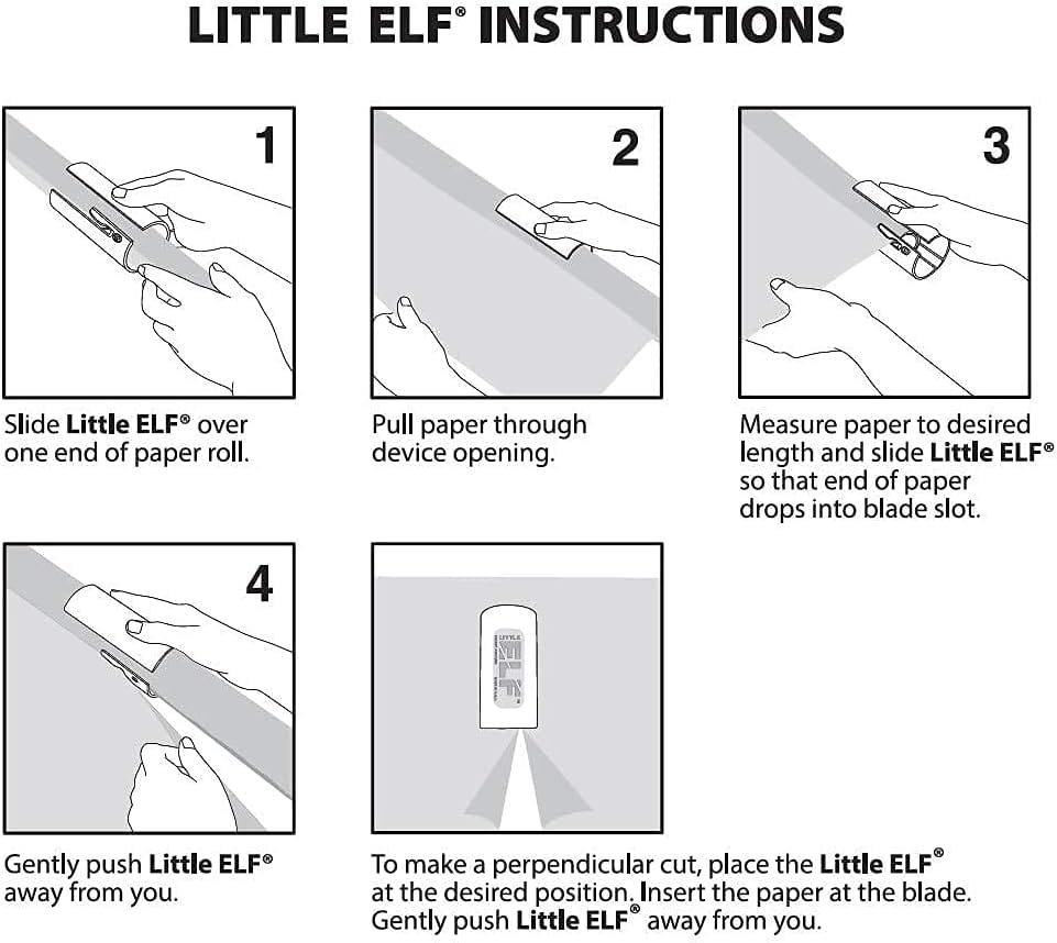 - Slice with perfection – Gift wrap cutting has always been a challenge with scissors! Scissors often rip, tear, and ruin the wrapping paper. Stop wasting paper and money! Getting the perfect cut is now incredibly easy with Little ELF. Get a straight, clean, and smooth cut every time. Little ELF is designed to make cross cuts as well, so it is perfect for trimming sheets.